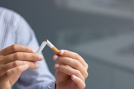 タバコに含まれるニコチンには血管収縮作用があるので、喫煙者は歯周病になりやすく、治療の予後も悪いといわれています。 そのため歯周病と診断された方は必ず禁煙し、歯周病予備軍の方は一日も早く禁煙しましょう。
