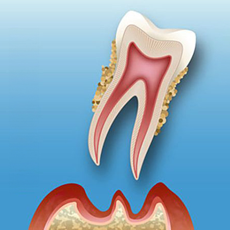 成人の約8割が罹患しているといわれる歯周病。「歯垢(プラーク)」の中の歯周病菌が繁殖し、歯ぐきに炎症が起こる病気です。症状がさらに進行すると、歯を支える歯槽骨が徐々に破壊され、歯がグラグラして抜け落ちます。