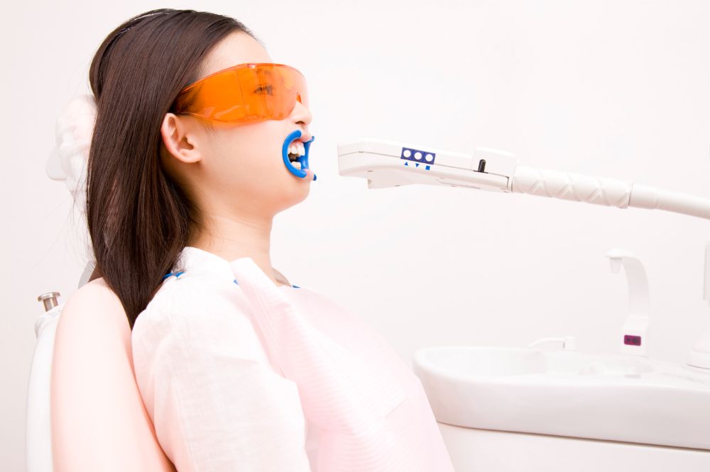 歯ぐきに保護材を塗布して、特殊なライトで固めます。