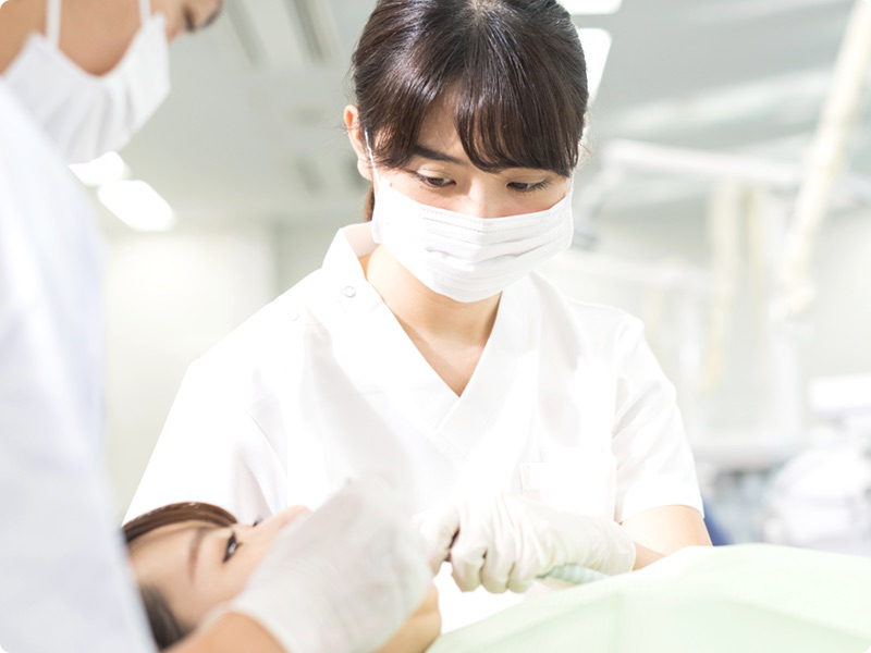 歯科口腔外科では、主にお口の中の外科処置を行います。歯ぐきの奥深くに埋まっている親知らずの抜歯をはじめ、口腔内のケガや歯の周辺組織の炎症、顎の骨折、腫瘍、口腔がんなどの診断と治療を行います。